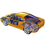 An all-new aluminum space-frame underpinned the 360, making it 40% stiffer than the outgoing F355. Another benefit of using aluminum over steel is that it weighs considerably less — some 28% lighter than the frame of the old car.