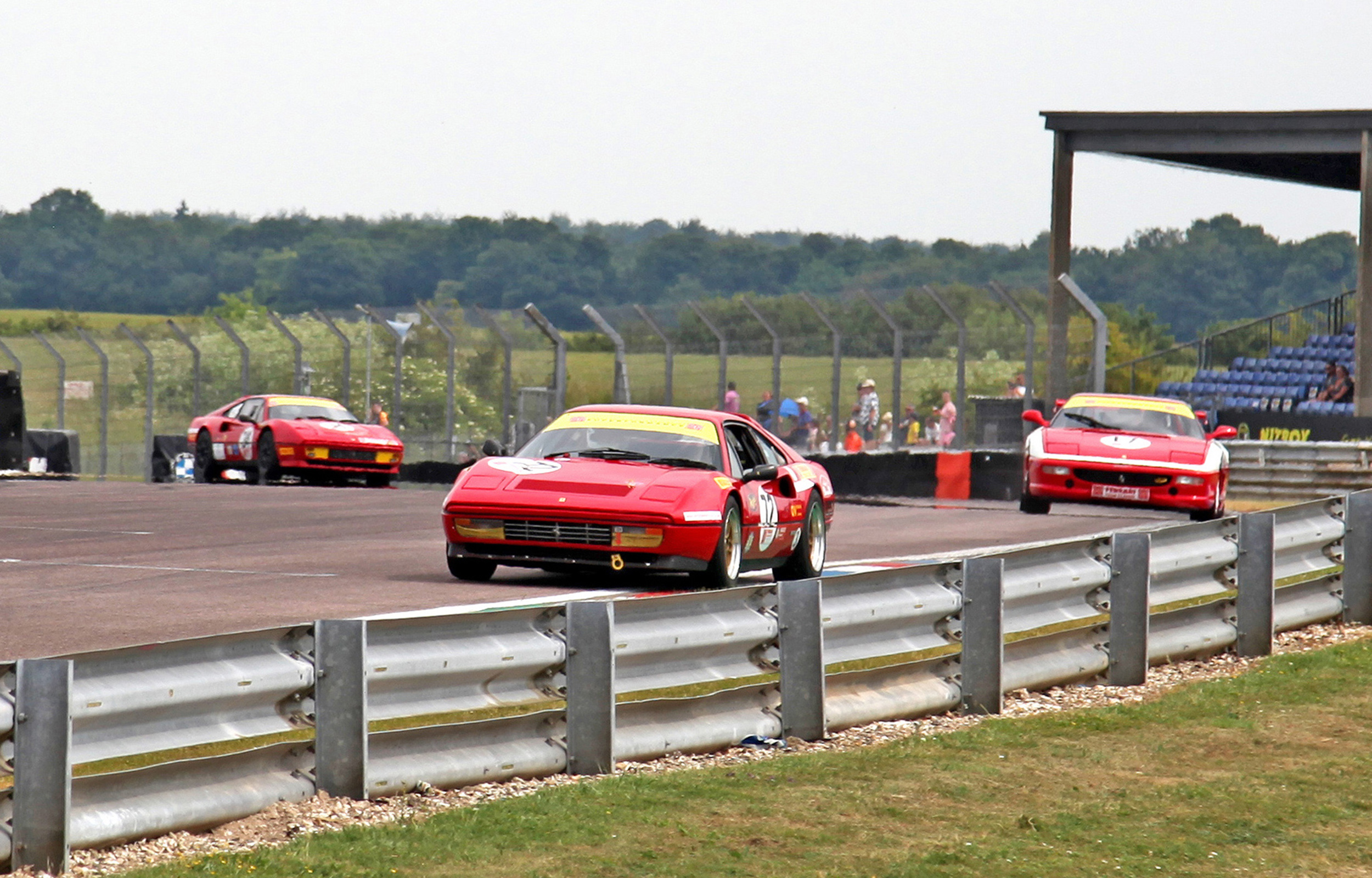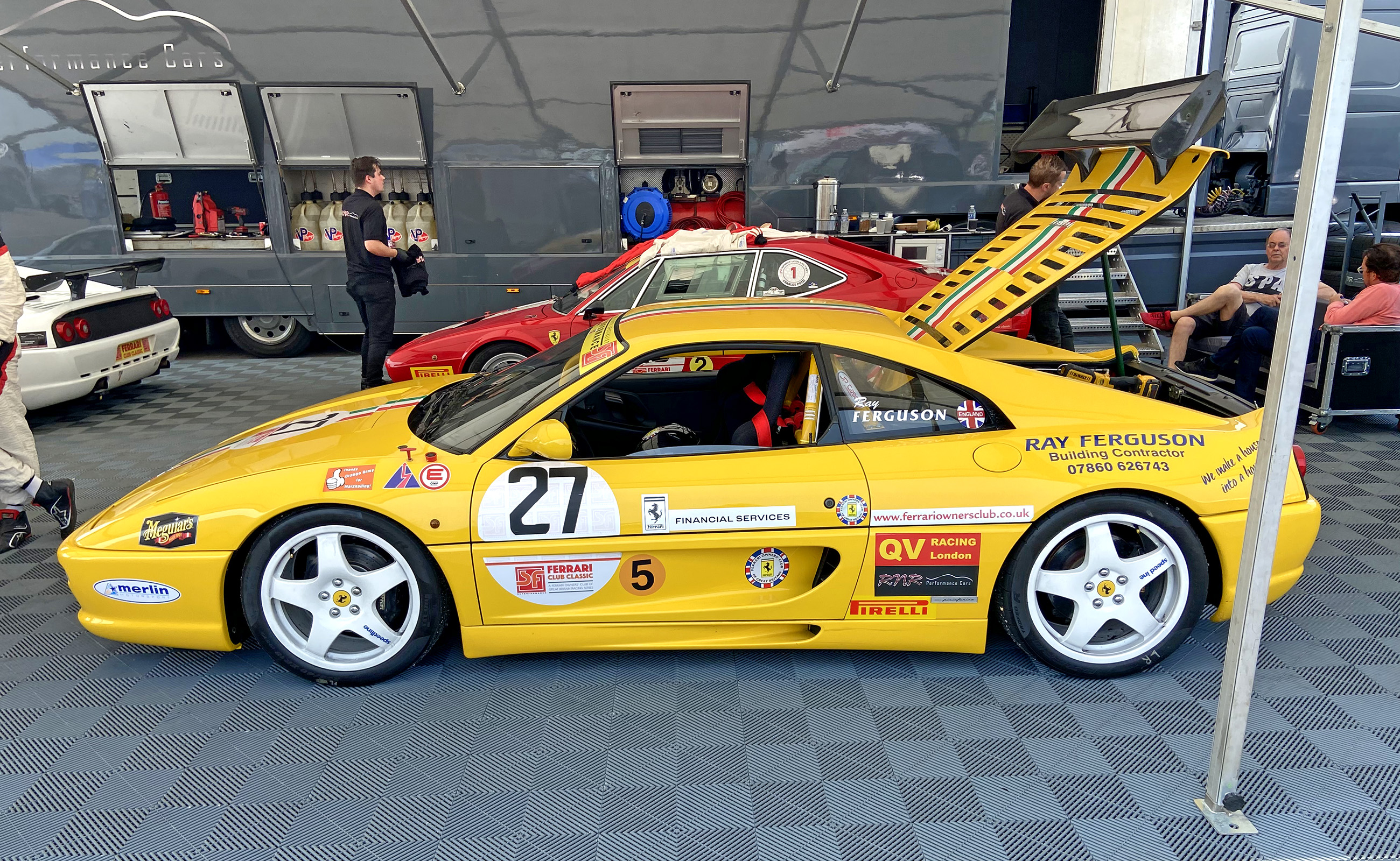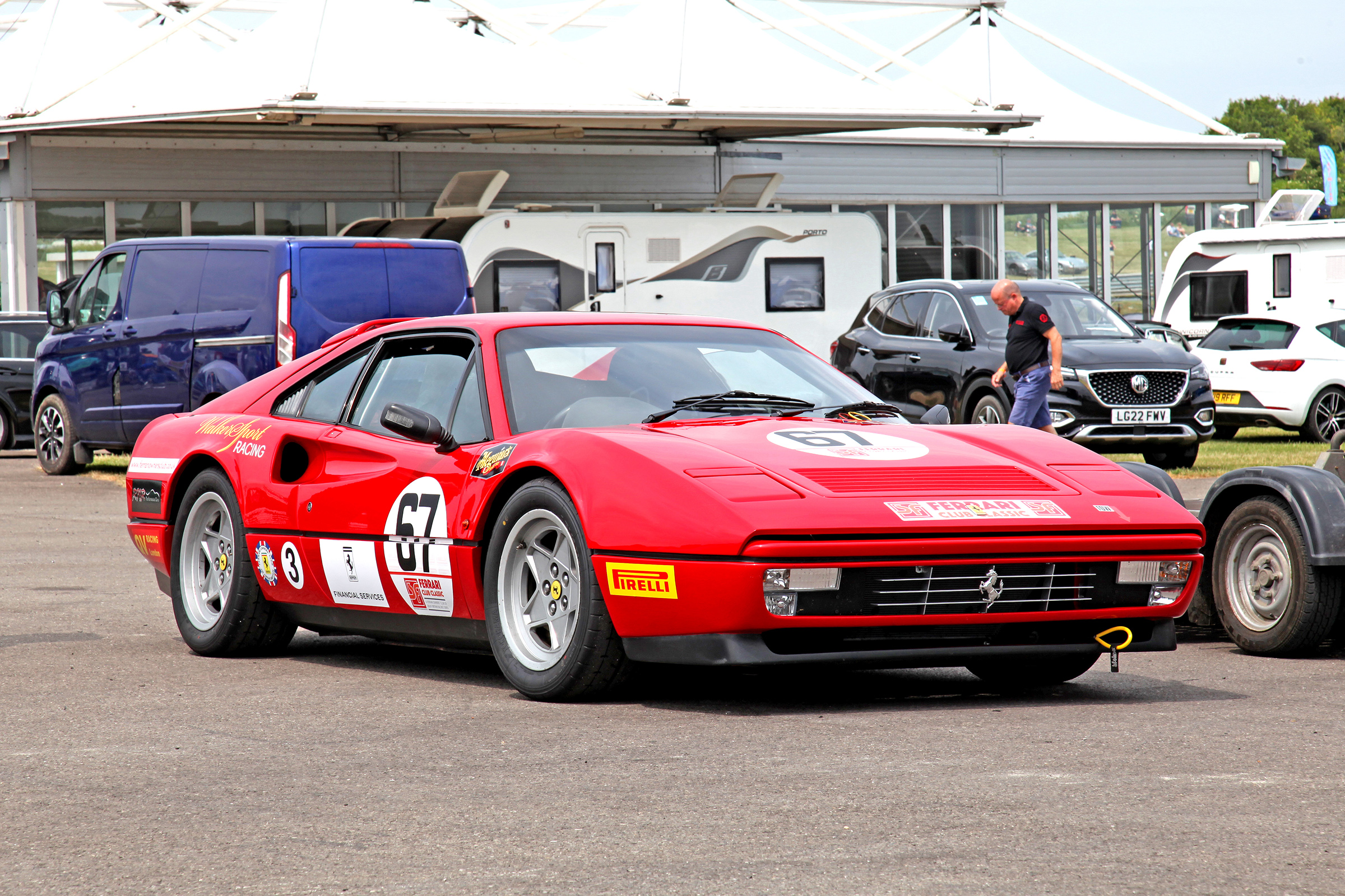 The Ferrari Club Classic was held at Thruxton Circuit on the 17th & 18th June 2023 at the Thruxton Historic weekend. We attended the first race on the Saturday and after some early rain, fortunately the weather held out for the race and we were blessed with sunshine. After a clean race start, the first lap was eventful, with Tony Claringbould going off in his Mondial through the complex, and he rejoined the track albeit with a damaged rear tyre causing him to go off again and retiring from the race at the next corner, Noble, this happening just as I was passing him.